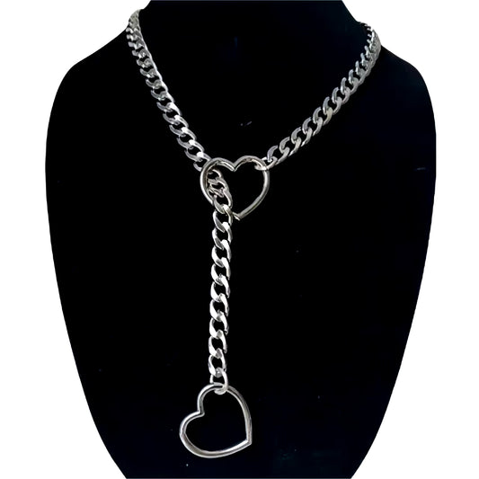 Womens Slip Chain Necklace Heart O-Ring Punk Rock Cuban Long Necklace Jewelry Adjustable Lariat Y-Necklace Heart Locker with Key